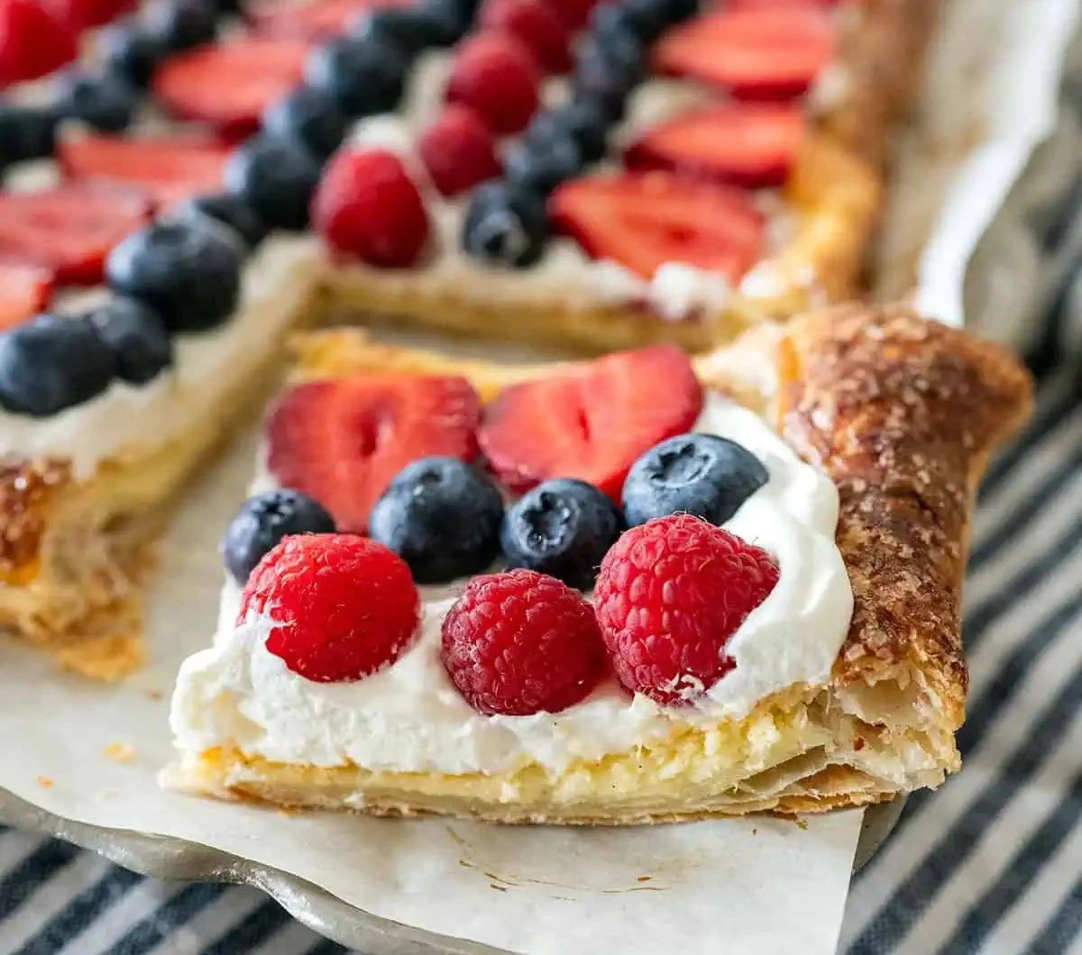 Girls Can Grill takes fruit pizza to the next level with this summery showstopper that’s part dessert, part art project. It starts with puff pastry (hello, buttery, flaky goodness) baked until golden and crisp, then layered with a cheesecake filling that’s creamy, slightly tangy, and perfectly balanced. And the grand finale? Fresh fruit arranged in gorgeous, colorful patterns worthy of your Instagram grid.