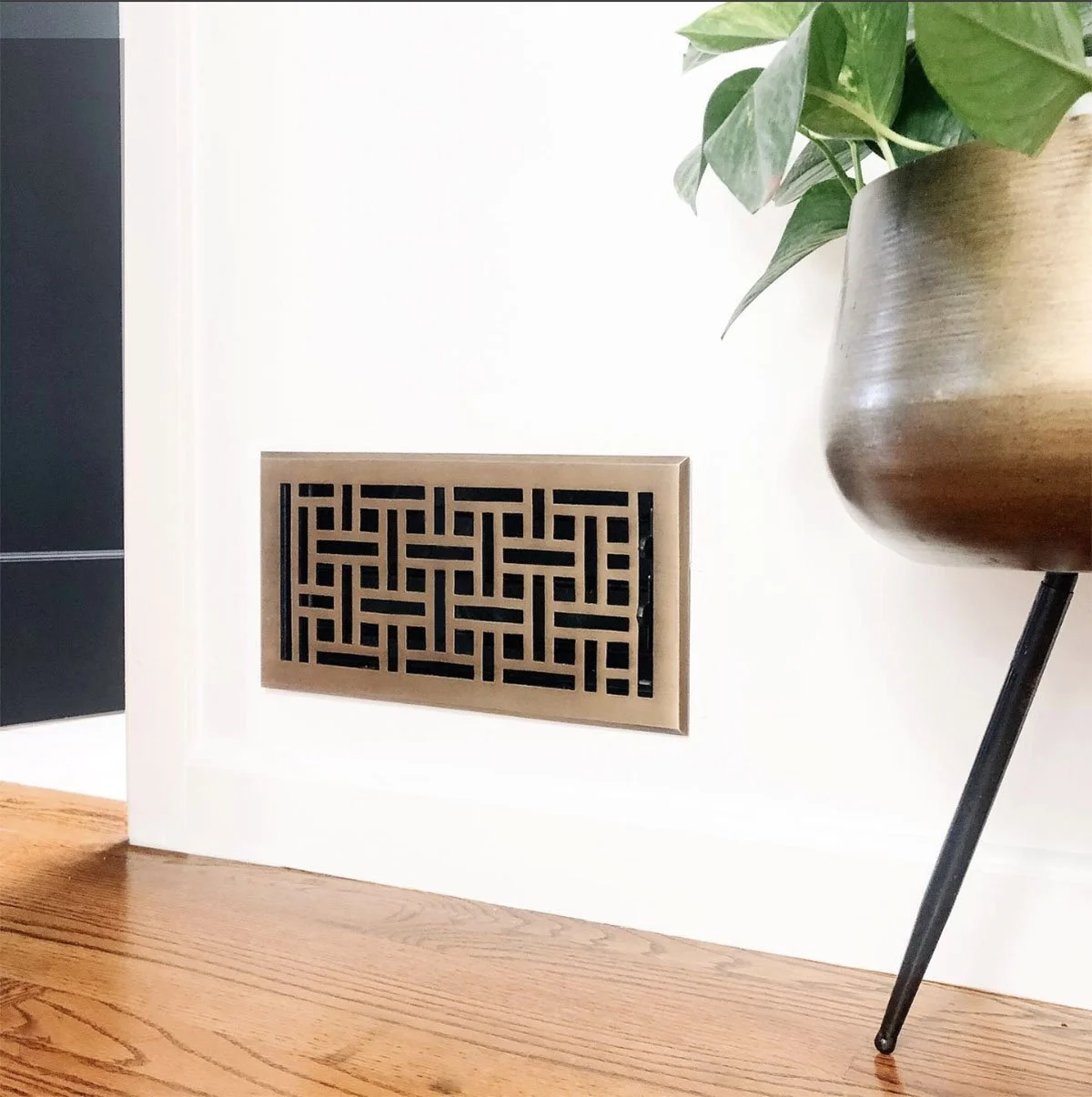 First up: swapping out your AC vent covers, one of those sneaky design details no one thinks about until they see a gorgeous, modern cover in brushed brass or matte black (see image above). Suddenly, your air vent’s not an eyesore, it’s an accent. Then there’s upgrading your electrical switch plates and outlet covers, which are often overlooked but make a subtle, sophisticated impact when upgraded from builder-grade plastic to something with a little texture — think wood, metal, or ceramic finishes.
